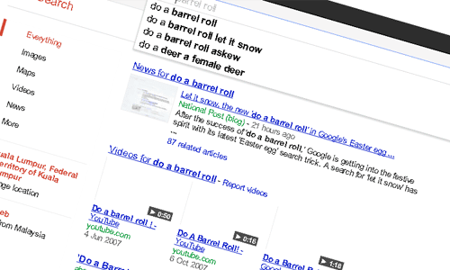在谷歌上搜索“做一个桶滚”,果然,你会发现谷歌为你徘徊。这是一个复活节彩蛋了早在2011年,但这肯定永远不会变老。
