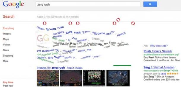 搜索“虫族冲”将开始游戏,催发致命谷歌O将咬在屏幕上的搜索结果。您可以保存结果通过单击O用鼠标,直到将他们灭尽。还有一个点计数器的数量啊,是你杀死了。