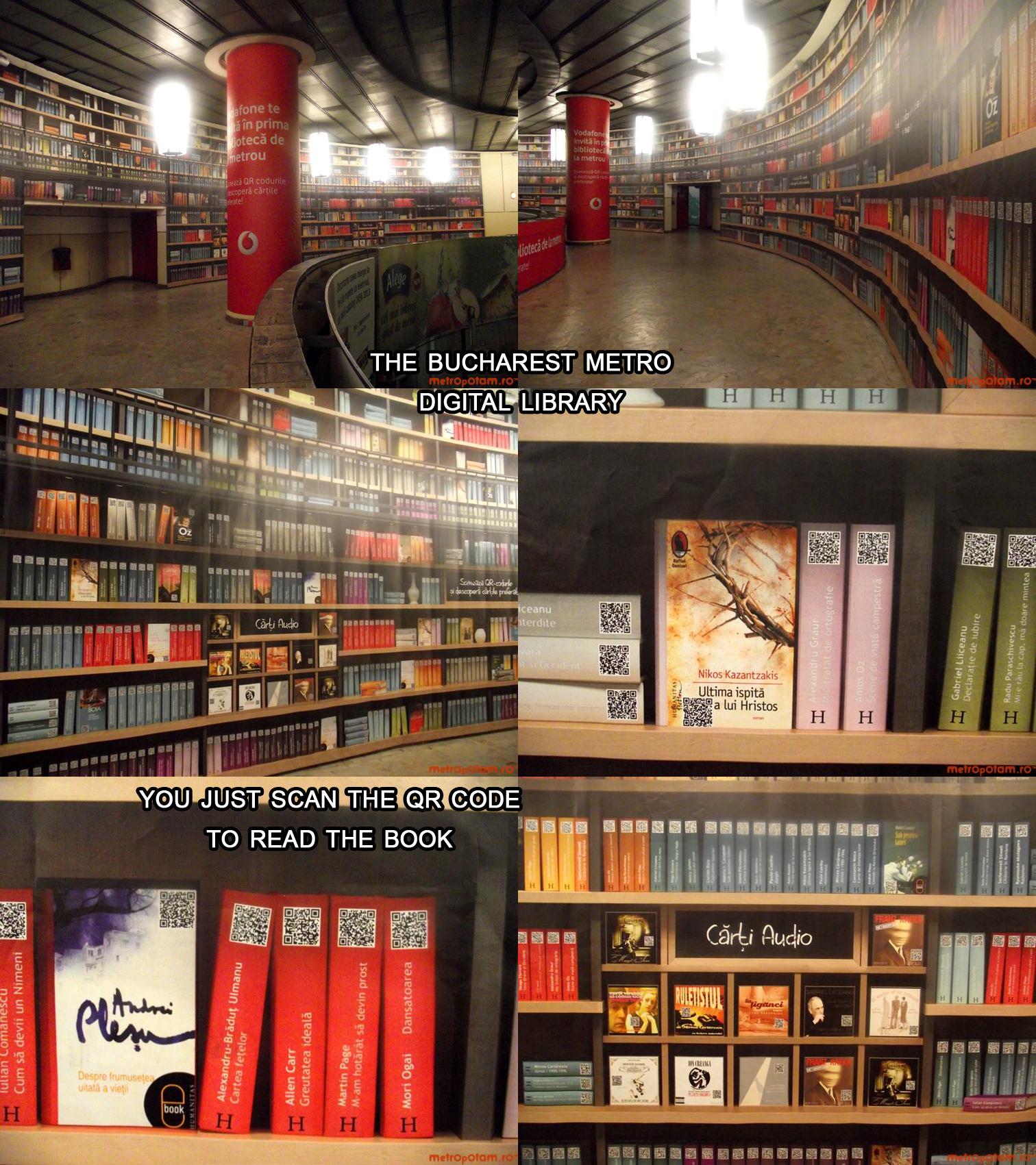在罗马尼亚布加勒斯特的地铁站,你可以扫描有声读物的二维码,然后在乘车途中欣赏它们。