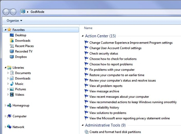 这个文件夹现在有270个项目,它们都与Windows 7(也适用于Windows 8.1)中的每个可配置选项有关。
