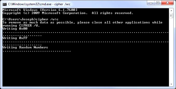 用要擦除的驱动器或分区的字母替换X。这需要一些时间,所以要有耐心。