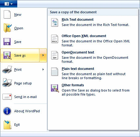 WordPad的文件支持