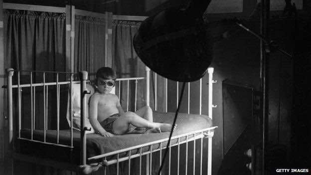 1918年冬天,瑞克(Rickets)造成了一半的柏林子女,使他们的骨头变得柔软和变形。人们认为原因是贫困,但库尔特·霍尔辛辛(Kurt Huldschinsky)博士继续找到解决该问题的方法。他注意到他的患者非常苍白,并通过将四个放在发射紫外线的汞 - 石英灯前面进行了实验。他注意到他的病人的骨头变得更强壮,很快这种治疗被广泛用于治疗德国的孩子。研究人员后来发现,紫外线触发了该反应,使维生素D使骨骼随钙累积。