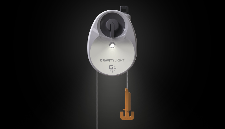 由Deciwatt制造的重力灯是一种使用重力来创造光的设备。它是由第三世界国家的人民创造的,他们无法获得电力。重量附着在设备上,并将其拉到一定的高度,随着它缓慢降低并创造足够的功率来点亮设备中的LED。灯持续25分钟,仅需3秒即可设置重量。