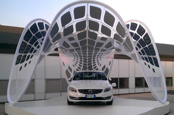 电动汽车非常适合环境,但可悲的是它们的范围有限,很难在旅途中找到一个充电的地方。沃尔沃太阳能馆是一个灵活的亭子,其表面上有许多太阳能电池板。凉亭就像任何电源插座一样连接到汽车,并使用太阳能为汽车的电池充电。一旦充电了车辆,就可以将凉亭折叠并存放在汽车靴中。沃尔沃太阳能馆是解决每辆电动汽车面临的有限范围问题的绝佳解决方案。