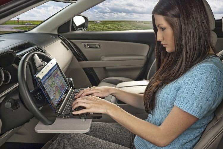 该产品已连接到汽车的转向上,因此您可以将笔记本电脑放在上面。只有在汽车静态时才能使用该产品。该方向盘桌可在亚马逊$ 25.39。