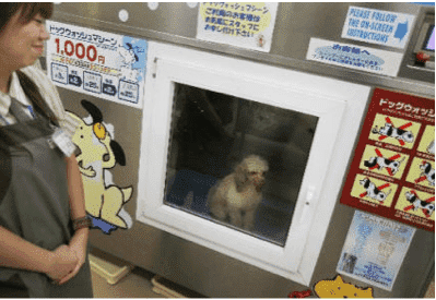 Dog-o-Matic是一台自动售货机,提供全狗洗,包括洗发水和温和的水喷气机,然后进行温暖的空气干燥。一次洗涤的价格为25欧元,需要30分钟(洗涤5分钟,干燥25分钟)。