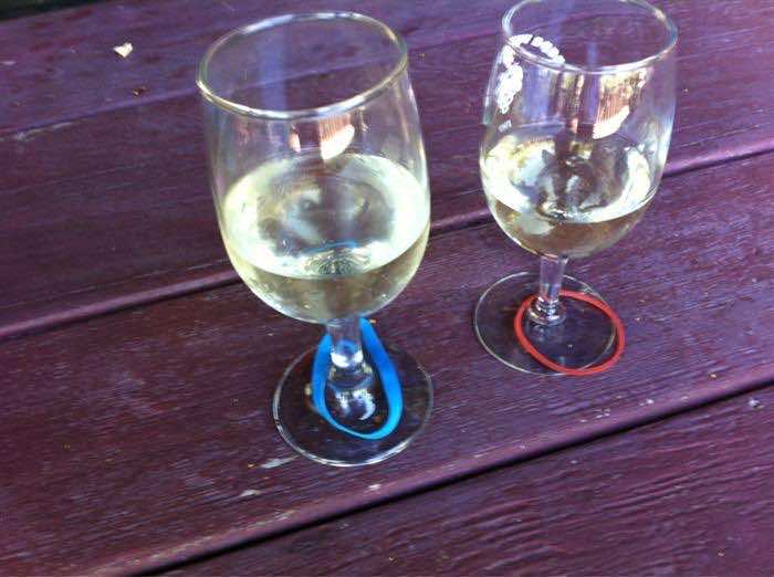 在一方使用橡皮筋标记你的玻璃在一个聚会上。