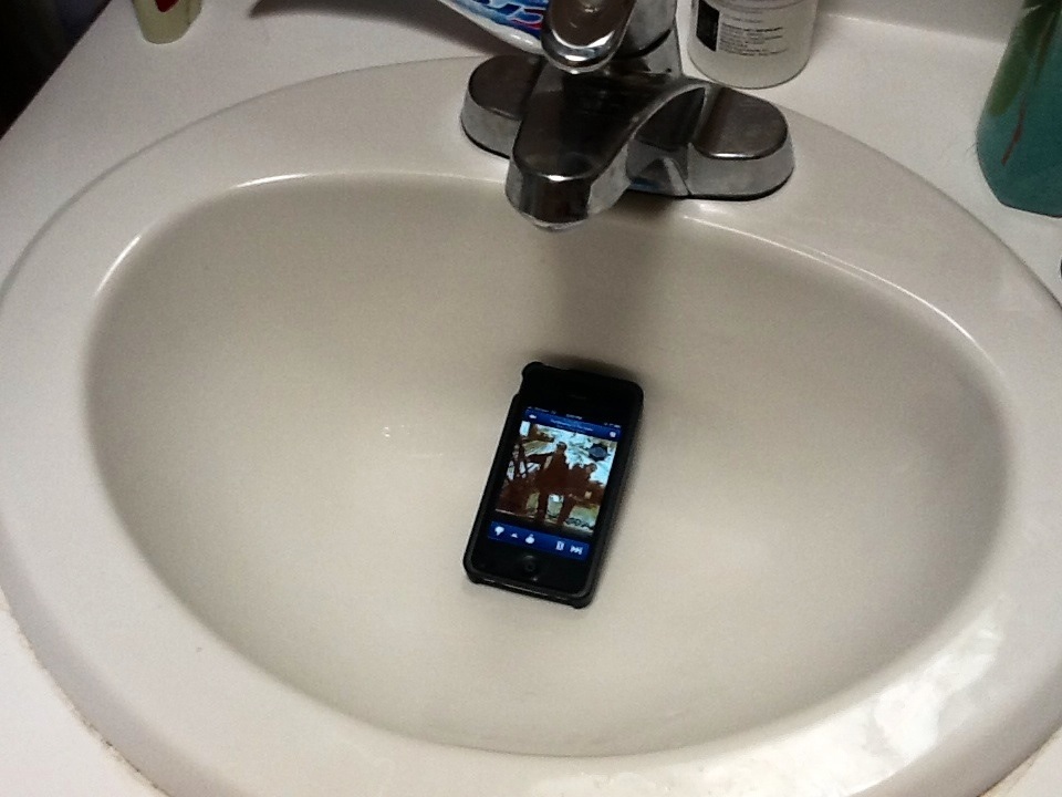 确保您的水龙头不会泄漏并且水槽干燥;现在,淋浴时将手机放在水槽中,享受自己的浴室音频系统!