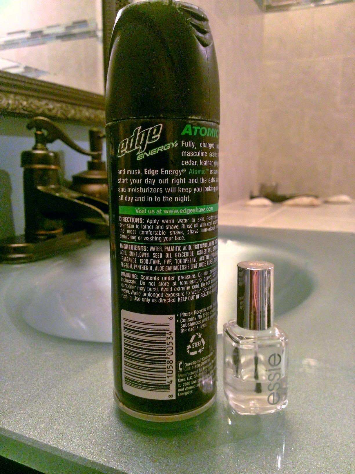 尝试将剃须泡沫罐倒置或在罐的底部边缘上涂上指甲油(透明),以防止生锈标记形成。