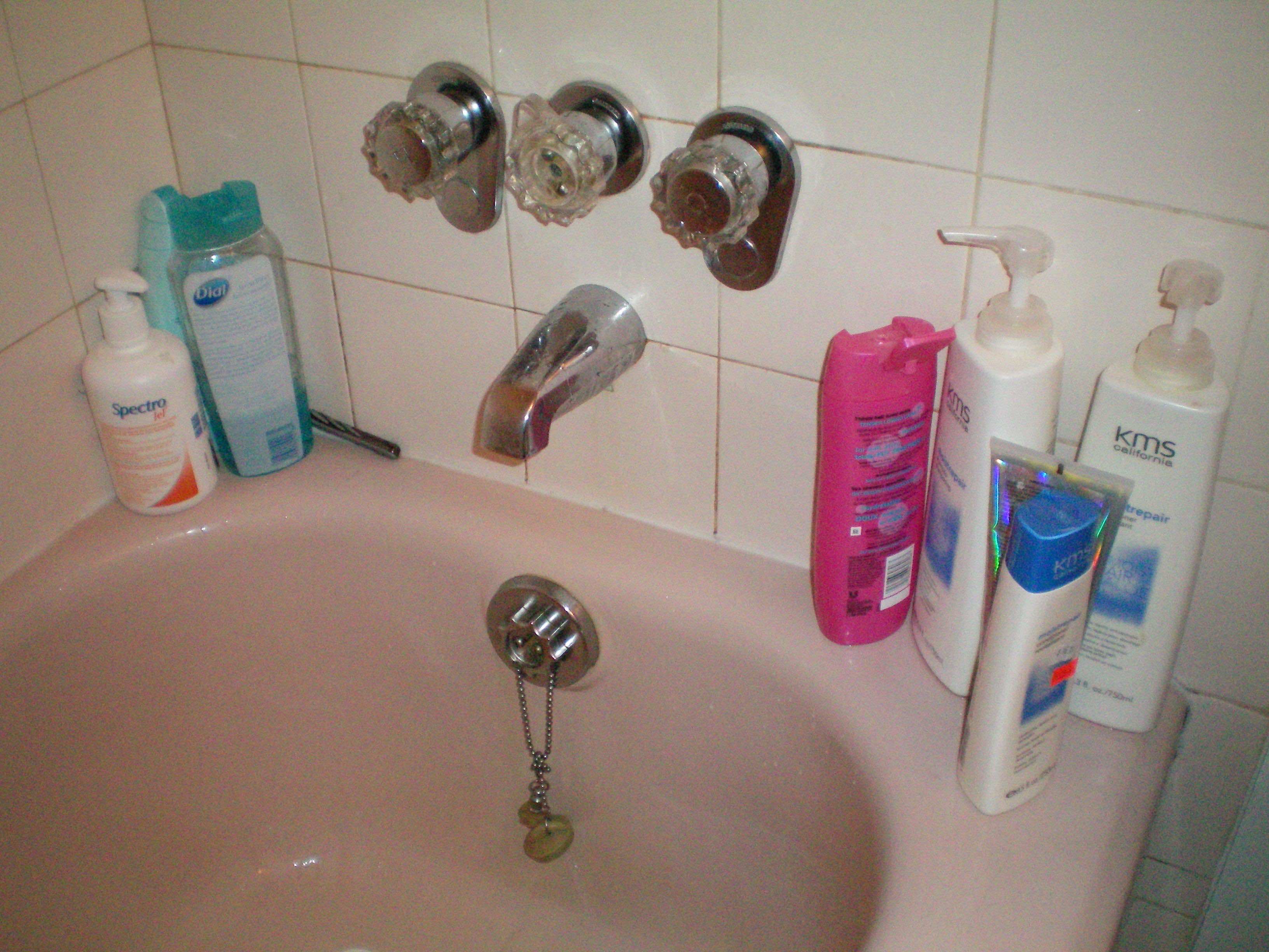浴帘需要到位,这些瓶子只是躺在周围,我们需要说更多吗?