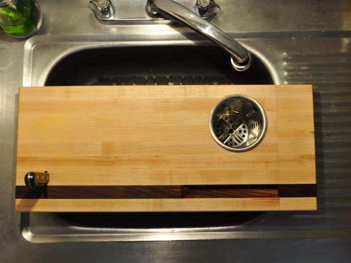 06.把切菜板盖在水槽上。