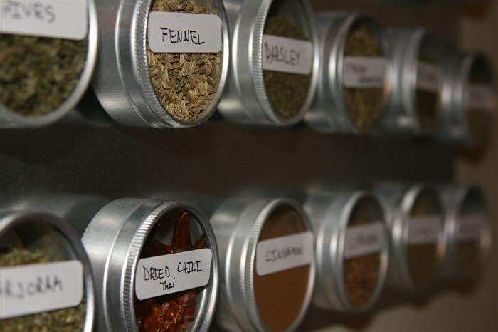 从橱柜中腾出一些空间,把冰箱门当香料架。既创新又有用。
