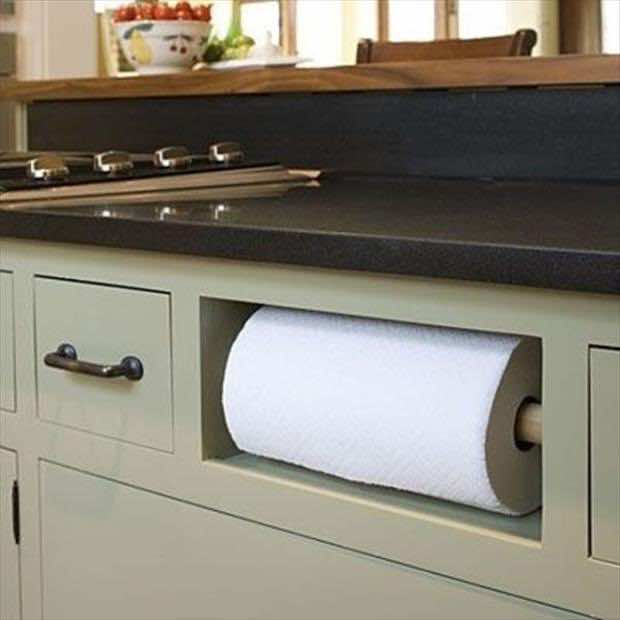 厨房里有很多所谓的抽屉,给它们一个用途,用纸巾架代替它们来节省柜台空间。