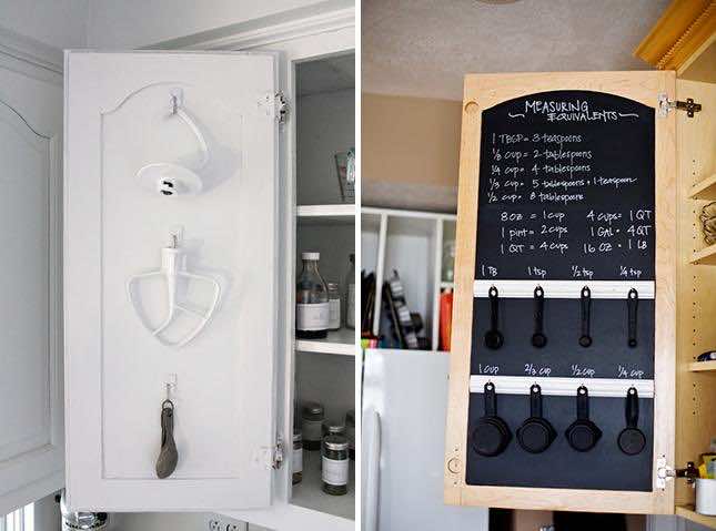 柜门对于悬挂的用途非常有用,例如量杯,勺子和任何其他较轻的东西。