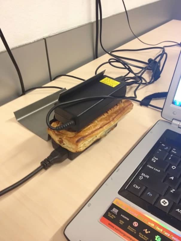 1)使用笔记本电脑充电器加热零食!