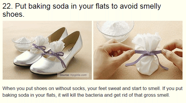 在鞋子里放小苏打可以去除鞋子和健身包上的异味。