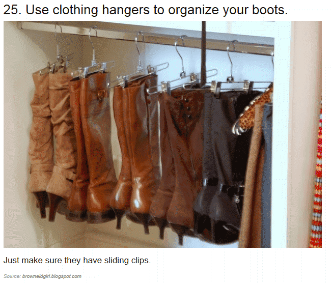 把靴子挂起来有助于保持它们的直立。确保衣架有滑动夹。