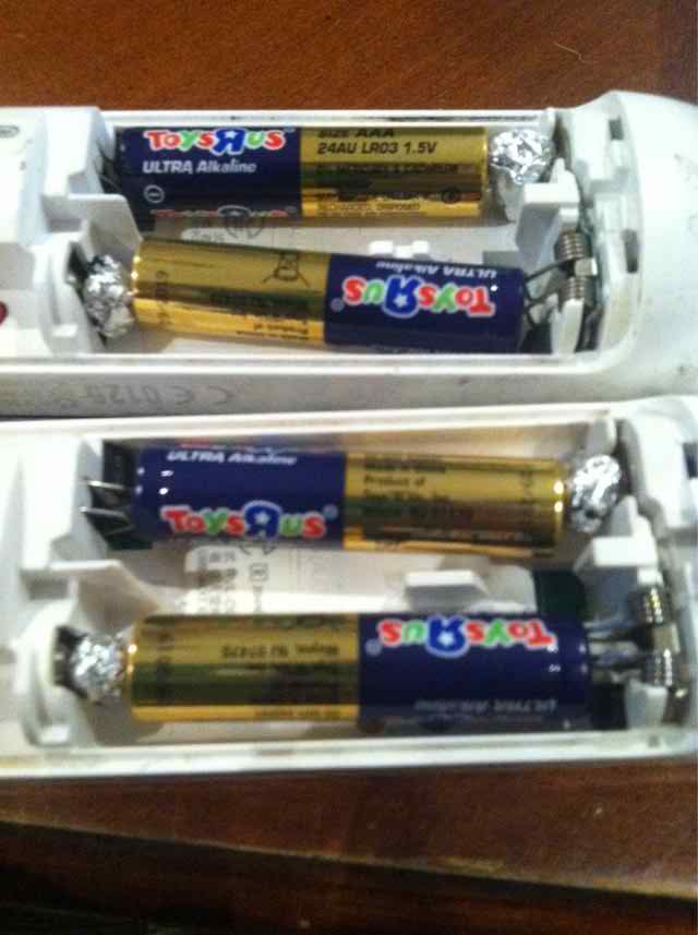 你可以把AAA电池装在一个AA电池大小的箔纸n +极。