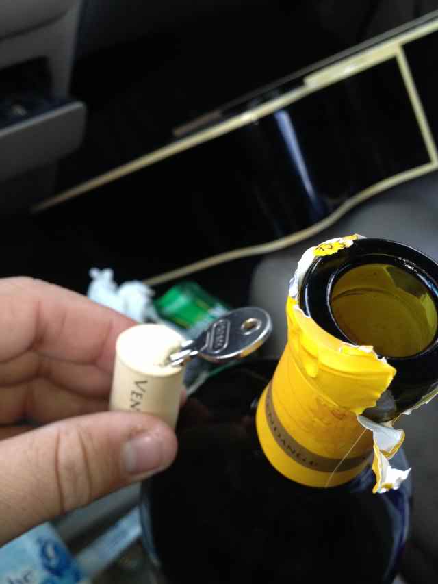 把钥匙以45度角固定在软木塞里,拧一拧,然后拔出来。享受你的饮料。