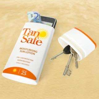 您可以使用一瓶干净的防晒霜将重要的东西隐藏在海滩上。