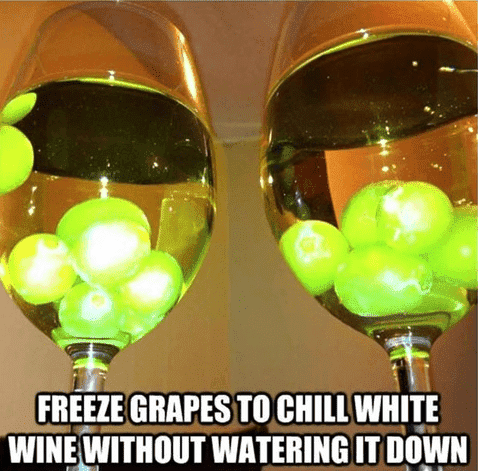 在葡萄酒中加入冷冻葡萄,而不是冰块,以避免喝泡沫葡萄酒。