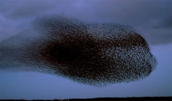 丹麦的有限光被来自北欧的八哥鸟的大规模出埃及记。这是一个美丽的景象。