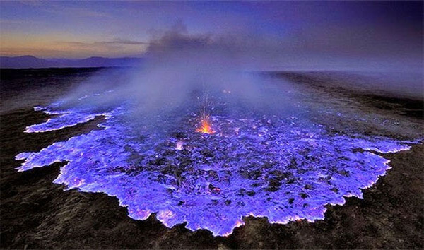这种熔岩在如此高的温度和速度下爆破了土地,与大气接触后立即变成蓝色。