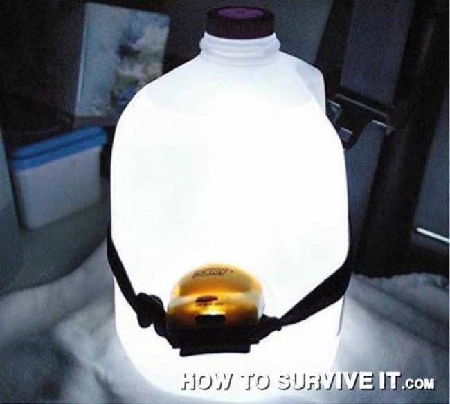 8.用前照灯和白色牛奶/水瓶做一个超亮的灯笼。