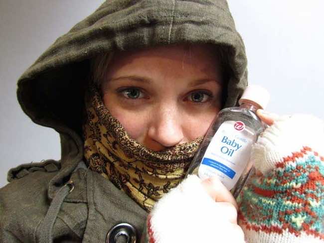 14.害怕被冻伤?在暴露的部位涂上婴儿油。