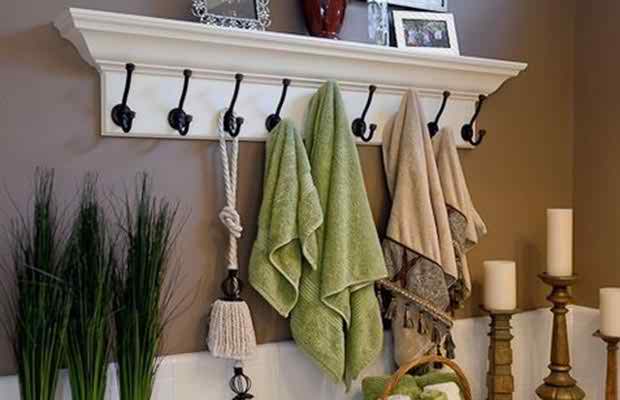 使用钩子比条形条更能组织你的东西。你想挂多少毛巾就挂多少。