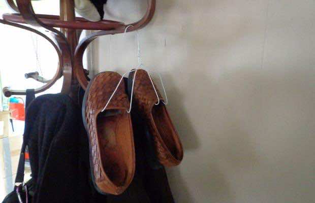 如果你把铁丝衣架做成模子,它们就可以当鞋架用了,这比把鞋子扔得到处都是要好。