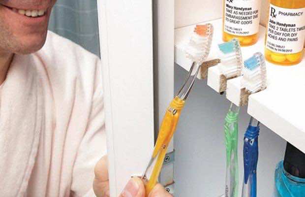 把牙刷挂在橱柜里,在架子上做一个小凹痕,肯定会增加空间