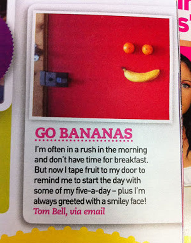 门上胶带粘上你的早餐,这样你永远记住健康食品开始你的一天。