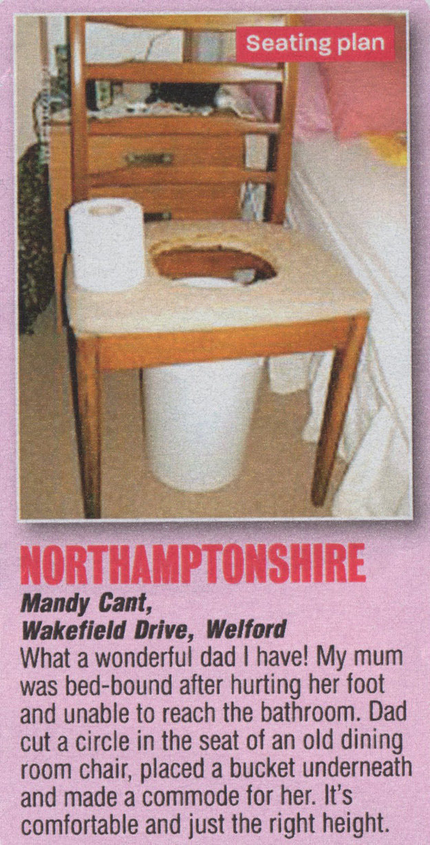 给长辈一个创新的便桶。你所需要的只是一把椅子和篮子。
