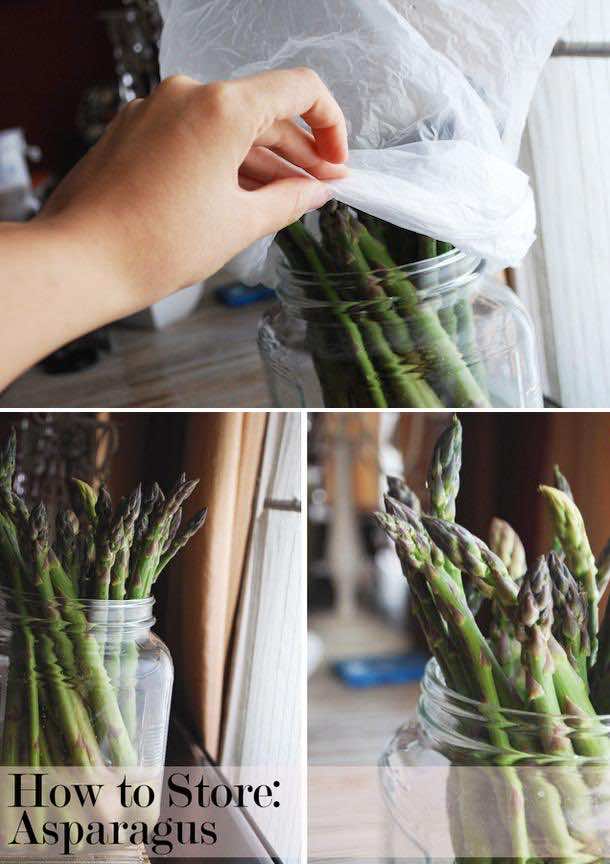 芦笋;把茎和在水包在一个塑胶袋,然后组装在冰箱里。这允许他们脆呆一个多星期。