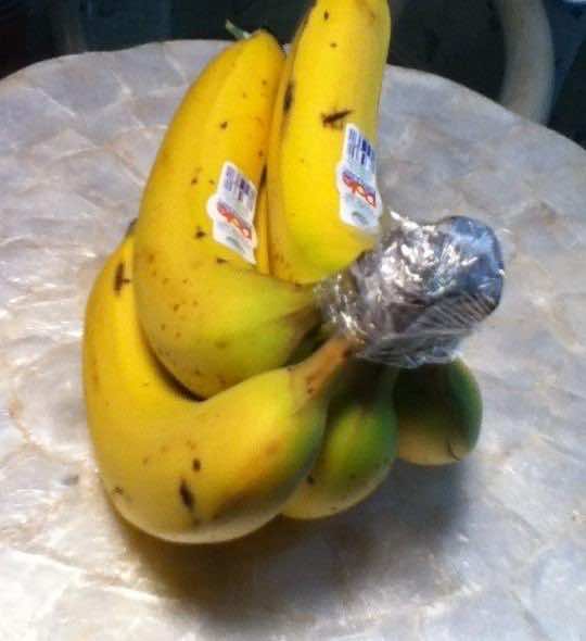 取出塑料包装,包装的皇冠串香蕉。这将允许您存储它们比平常3 - 5天的时间。