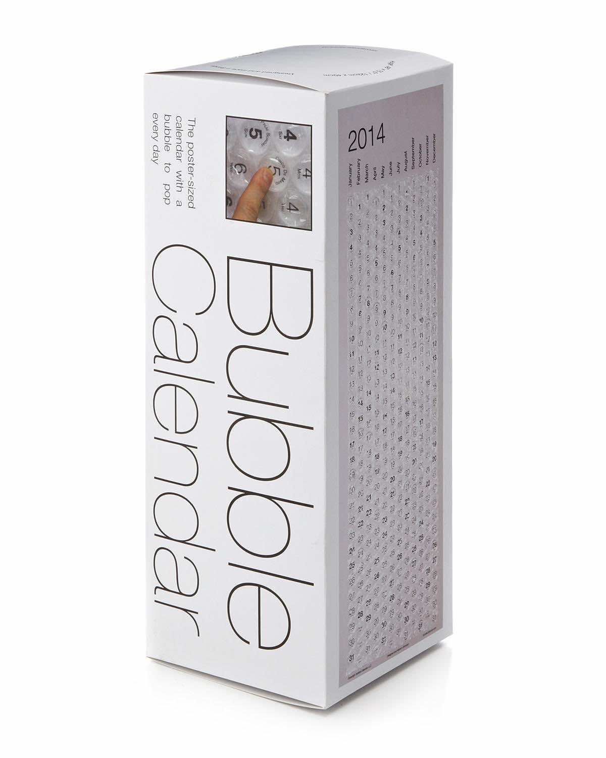 我们都喜欢戳破气泡纸。生活中很少有事情如此简单和令人满意。泡泡日历让你一整年每天都有这种满足感。海报大小的日历,每一天都有一个泡泡,你可以戳破它。周末以粗体标记,以方便参考。你可以得到一个在这里
