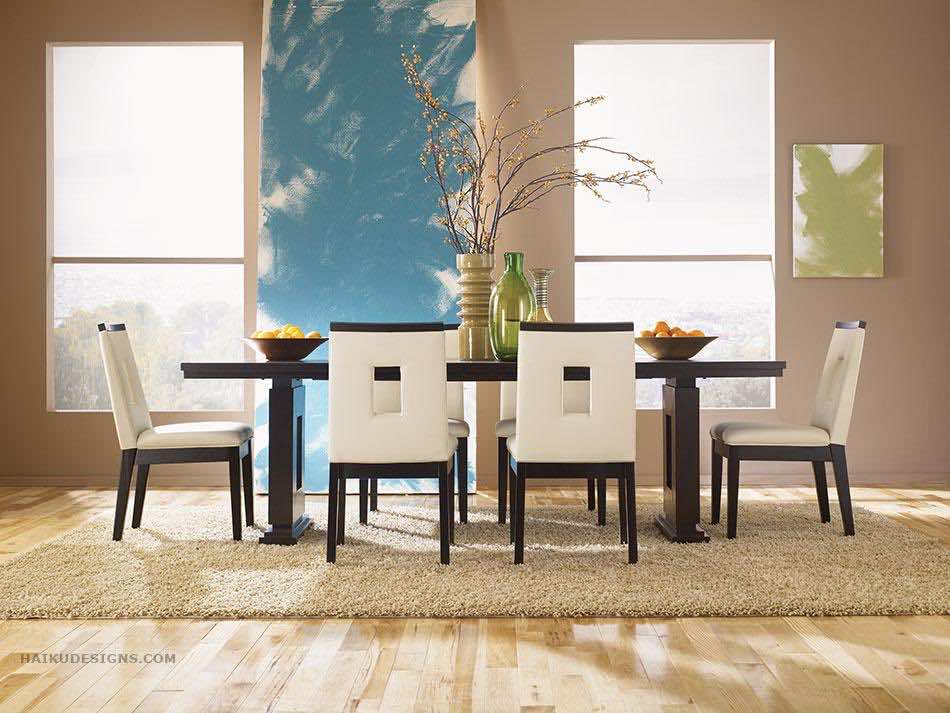 选择餐桌和椅子并不总是选择的问题,但是,在可能的情况下,桌子和椅子周围应该有足够的空间,这样就餐者不会感到局促,或者椅子不会在每次有人拉它们时撞到墙壁。