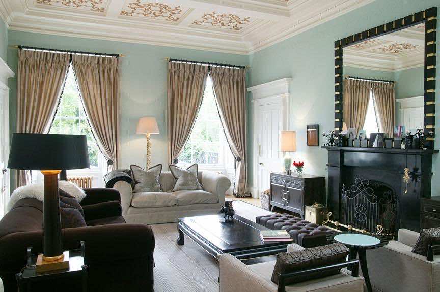 柔和的色调使客厅显得平静、镇定和清醒。一般来说,人们更喜欢使用微妙而朴实的颜色,在传统的客厅里为高雅的聚会营造优雅的氛围。然而,如果你想设计一个现代的客厅,你可以玩明亮和大胆的颜色,你的面积足够大,容纳他们的大胆。