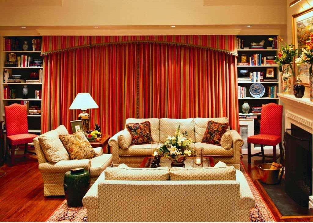 客厅是展示奢华、富丽、奢华和精致的地方。虽然沉重的窗户处理是过去的做法,但优雅来自于窗帘和窗帘中大量使用的织物。窗帘并不一定要花俏,简单而优雅的面料加上厚实的褶皱可以成功地传达出奢华。