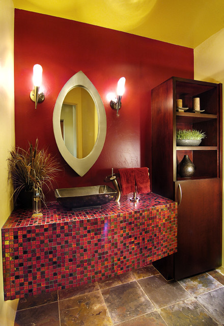 设计一个化妆室可以是有趣的,因为它是一个小房间,所以它不需要太多的钱或精力,使它成为一个好看的房间。把化妆室当作一个“首饰盒”——它的小尺寸实际上使它成为一个完美的房间,可以做出大胆大胆的设计宣言,让客人脱颖而出。无论是刷一种明亮的颜色,在墙上画一个装饰图案,还是安装一个别致的瓷砖后挡板,化妆室的装饰机会是无限的,你真的可以疯狂。