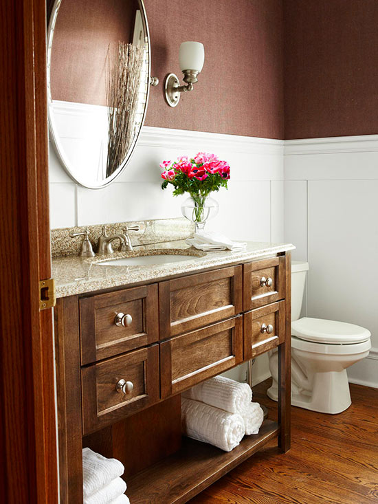 没有什么能比时尚优雅的化妆间更能让客人感到舒适和欢迎。尽管化妆室是房子里最简陋、最简单的地方之一,但它靠近客厅的位置使它成为最常用的地方之一。此外,它还可以作为一个展示品,供那些肯定会使用它的游客参观。化妆间很棒,因为它们为客人提供了方便,而且不需要客人在你的主要个人浴室里窥探和偷偷摸摸。化妆间在设计上是相当棘手的,因为它通常很小,只能容纳一个洗手台、梳妆台和马桶,但你可以使用聪明而时尚的配件来做很多事情。半浴空间很小,太多的触摸、纹理和图案会很快破坏空间。