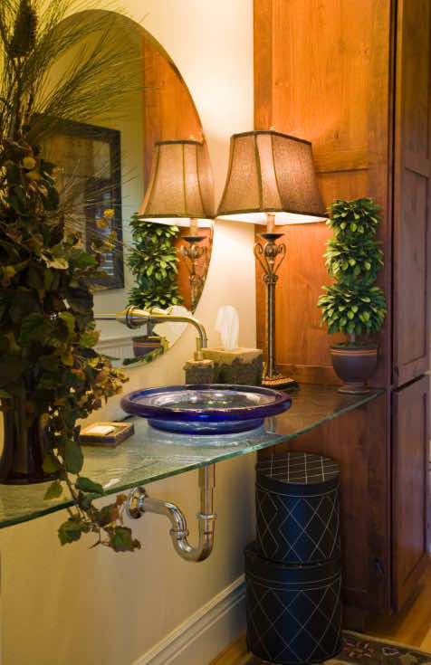 在设计化妆室时,重点应该放在镜子、梳妆台、脸盆、喷口和墙壁上。通过对有价值的物品的投资和周到的设计,您可以轻松地将您的小浴室变成客人的绿洲。在这个小空间里选择大胆的颜色,比如红色、深蓝色、绿色甚至黑色都可以。拥抱房间的小空间,去戏剧性的地方,浴室并不总是要很大才能有效和吸引人。想要让化妆室温馨温馨,就装饰一下吧。在墙上添加艺术品,在台面上摆放小物件,还有一些小礼物,比如丰富的乳液和切碎的肥皂,让客人使用,把灯光调暗,点上令人愉快的蜡烛,当有人要求使用浴室时,毫不犹豫地说一个大大的同意。
