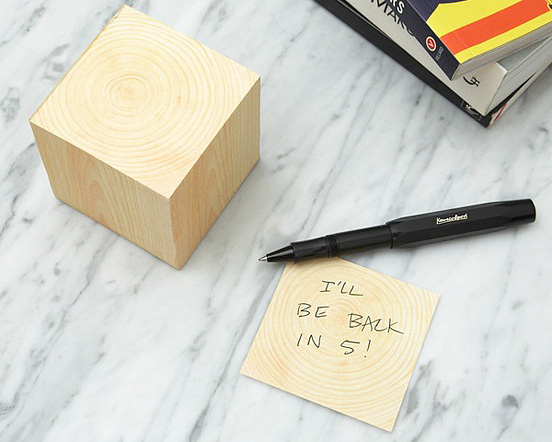 这个仿木纹立方体是由Kenjiro佐Mr_Design, Inc .)、日本。每个音符印着一个相同的木纹图案让整个堆栈看起来像个细凿成的块木头。你可以得到一个在这里