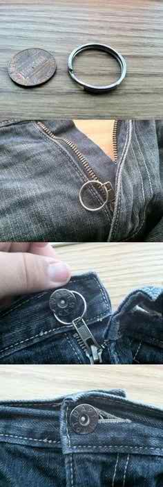 钥匙扣可以帮你藏好裤子拉链。如图所示。