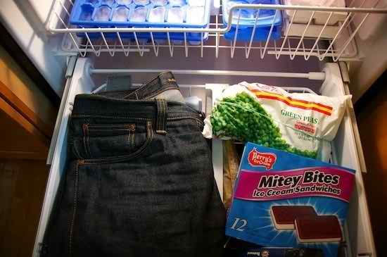 把你的牛仔裤放进冰箱里可以去除异味。哇