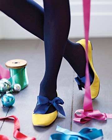 在脚上系一条丝带,让你的平底鞋看起来更有创意。