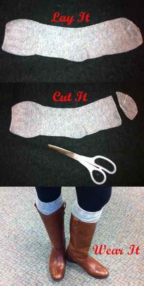 剪掉一些旧袜子的脚趾,这样可以很容易地把你的紧身牛仔裤塞进靴子里。
