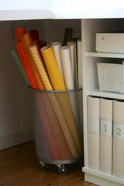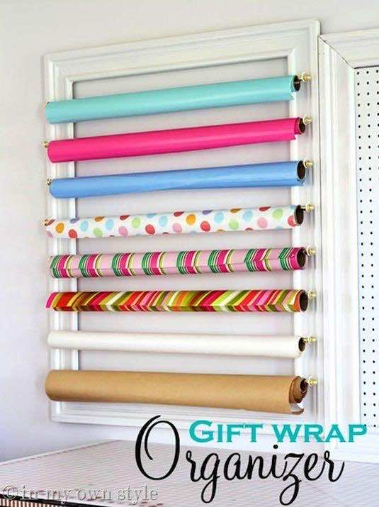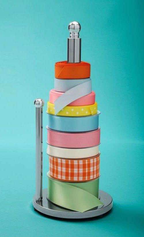 利用纸巾架,把你的丝带放在上面,好好利用它们。